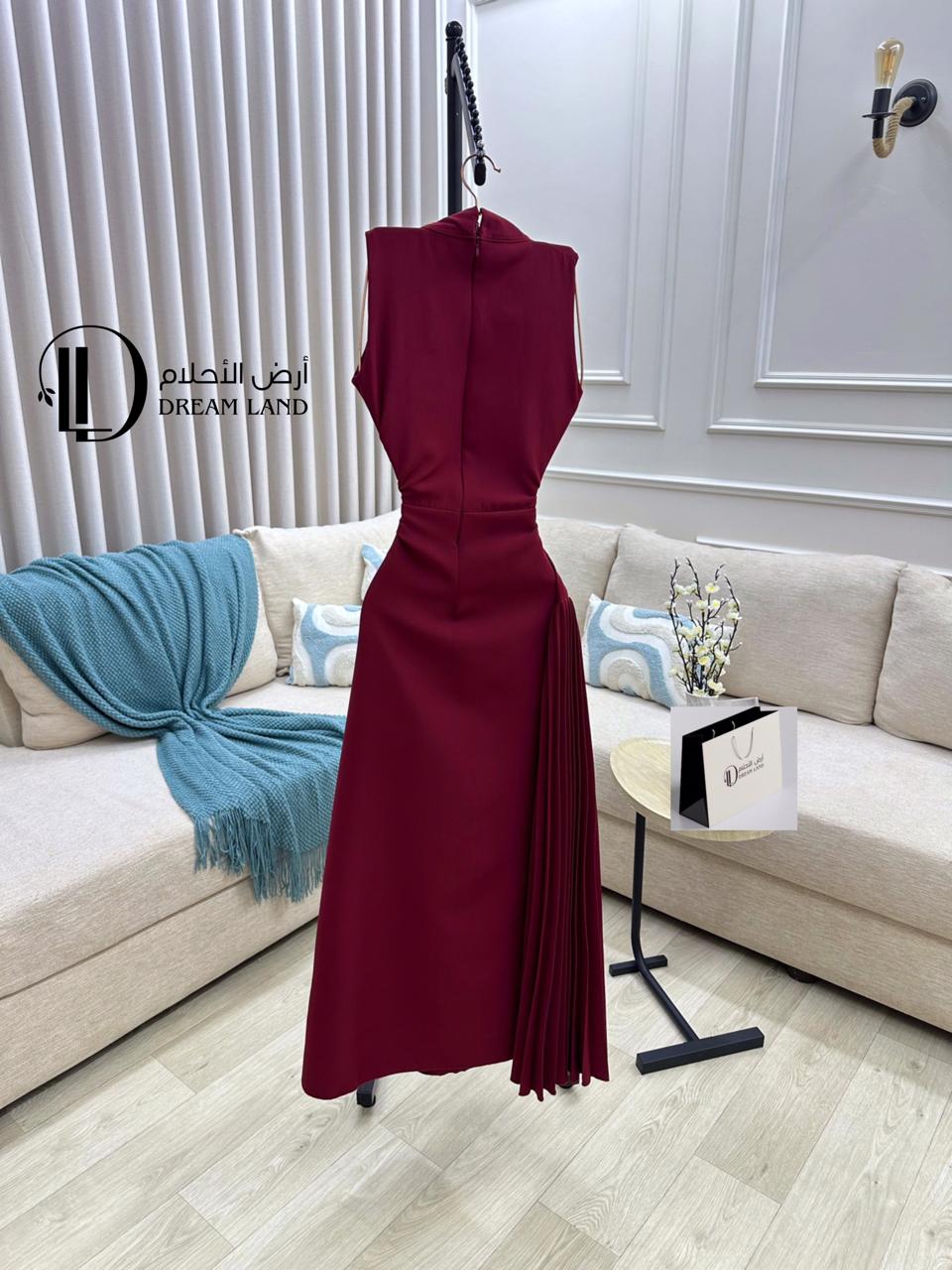 - القصة: فستان ميدي بقصة أنيقة وكسرات جانبية.