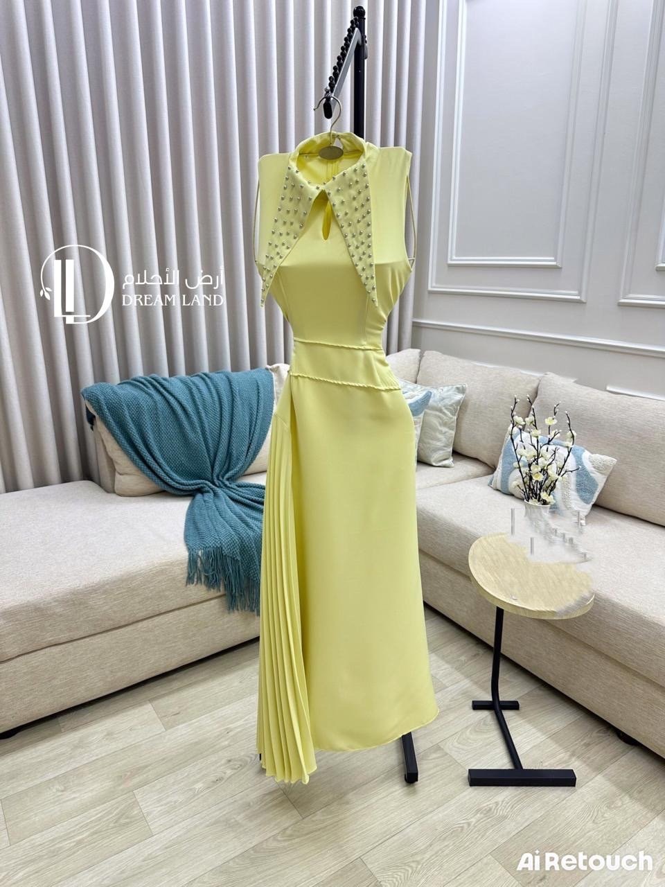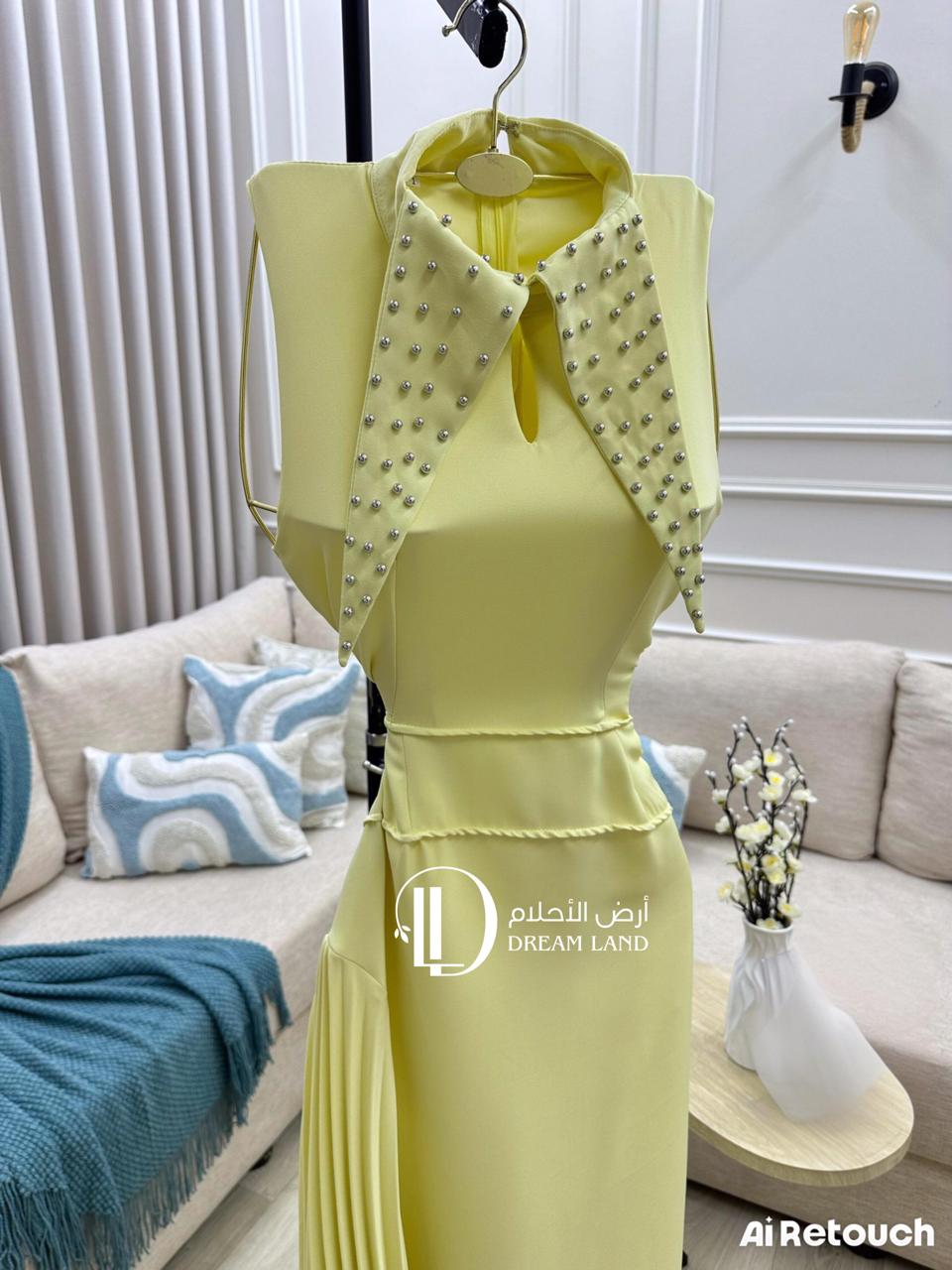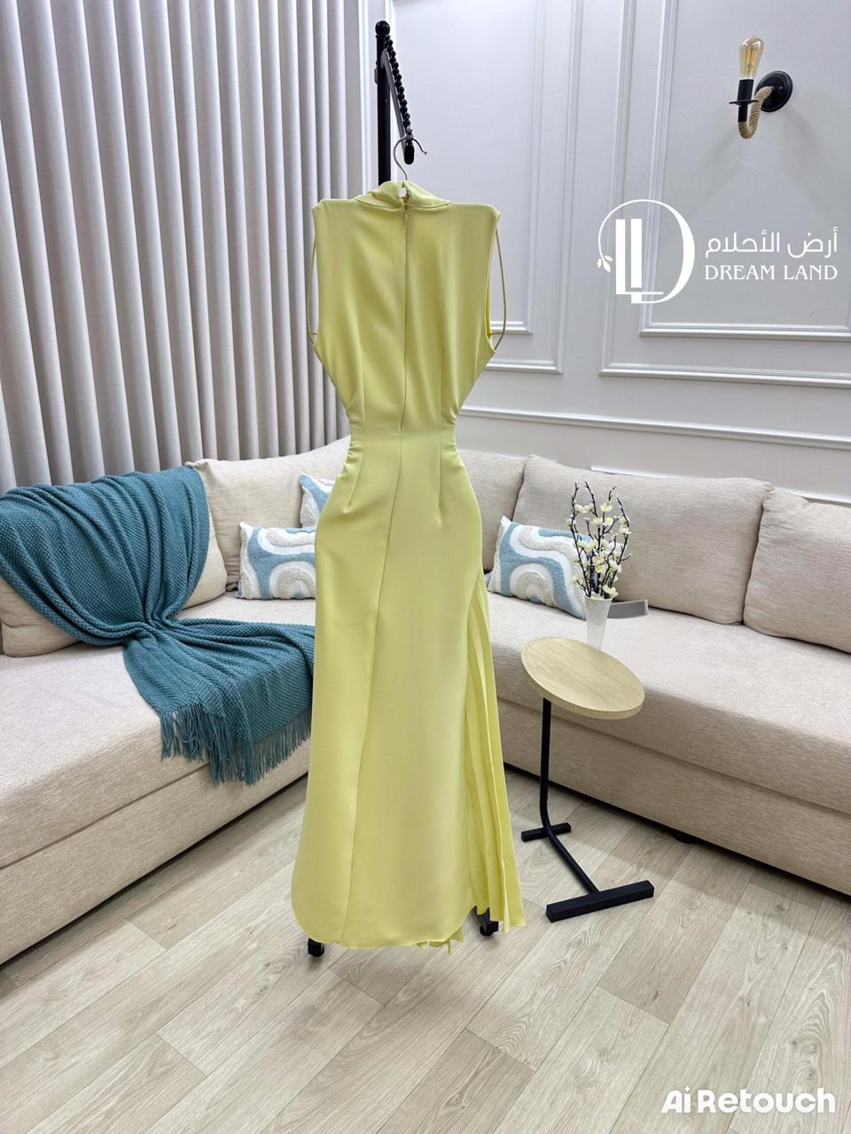 كوني أيقونة الأناقة العصرية مع هذا الفستان الأصفر. يتميز بتصميمه الفريد الذي يجمع بين ياقة مطرزة بتفاصيل لامعة، وقصة أنيقةبخصر محدد. كما تضيف الكسرات الجانبية لمسة من الدراما والحركة على الإطلالة. هذا الفستان هو الخيار الأمثل للمناسبات النهارية، وحفلات الغداء، أو أي احتفال يتطلب إطلالة عصرية ومختلفة.