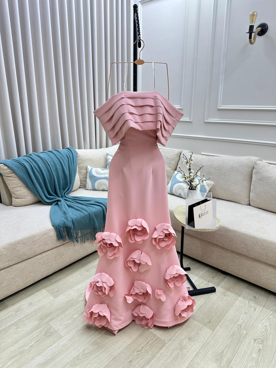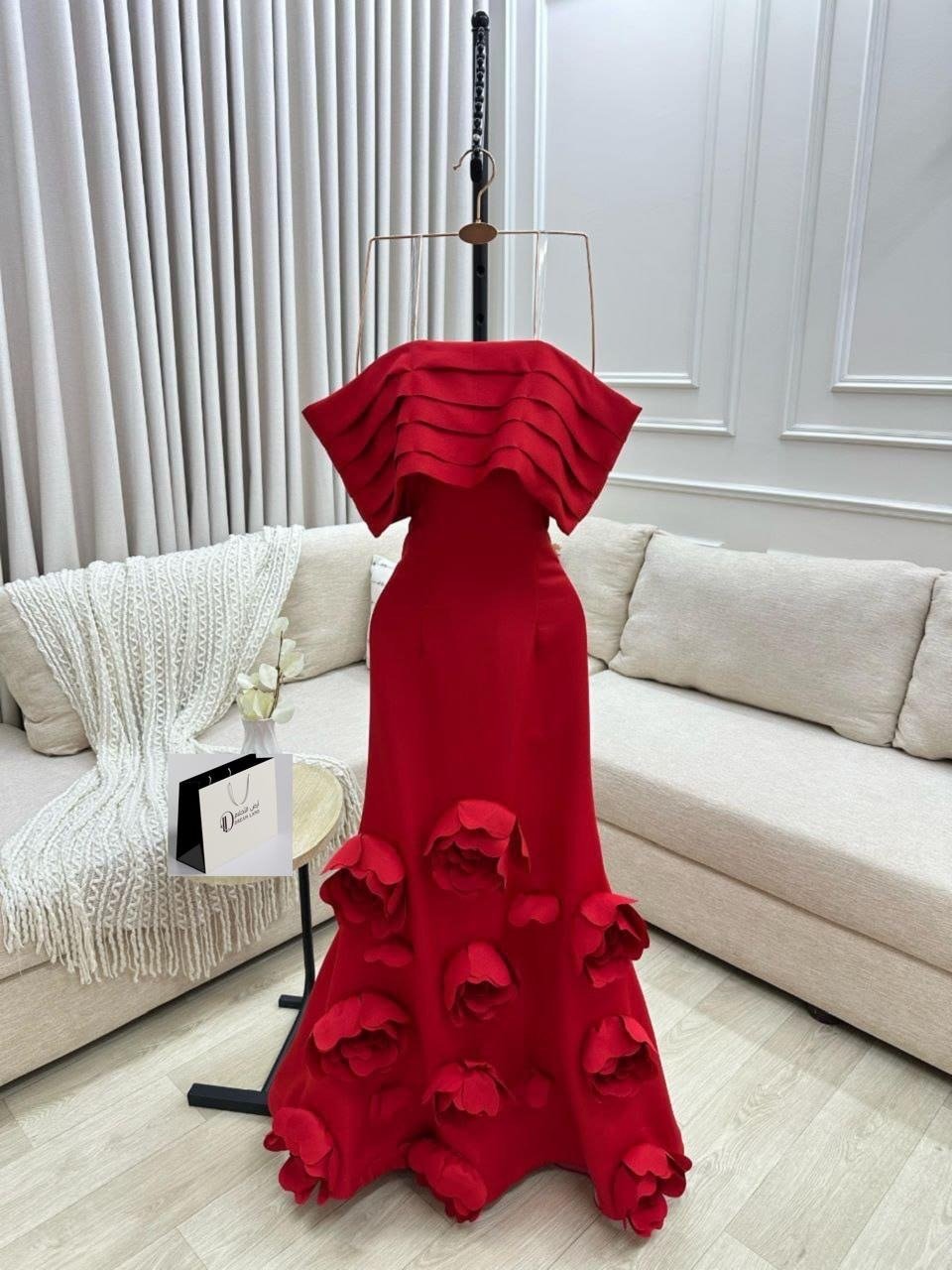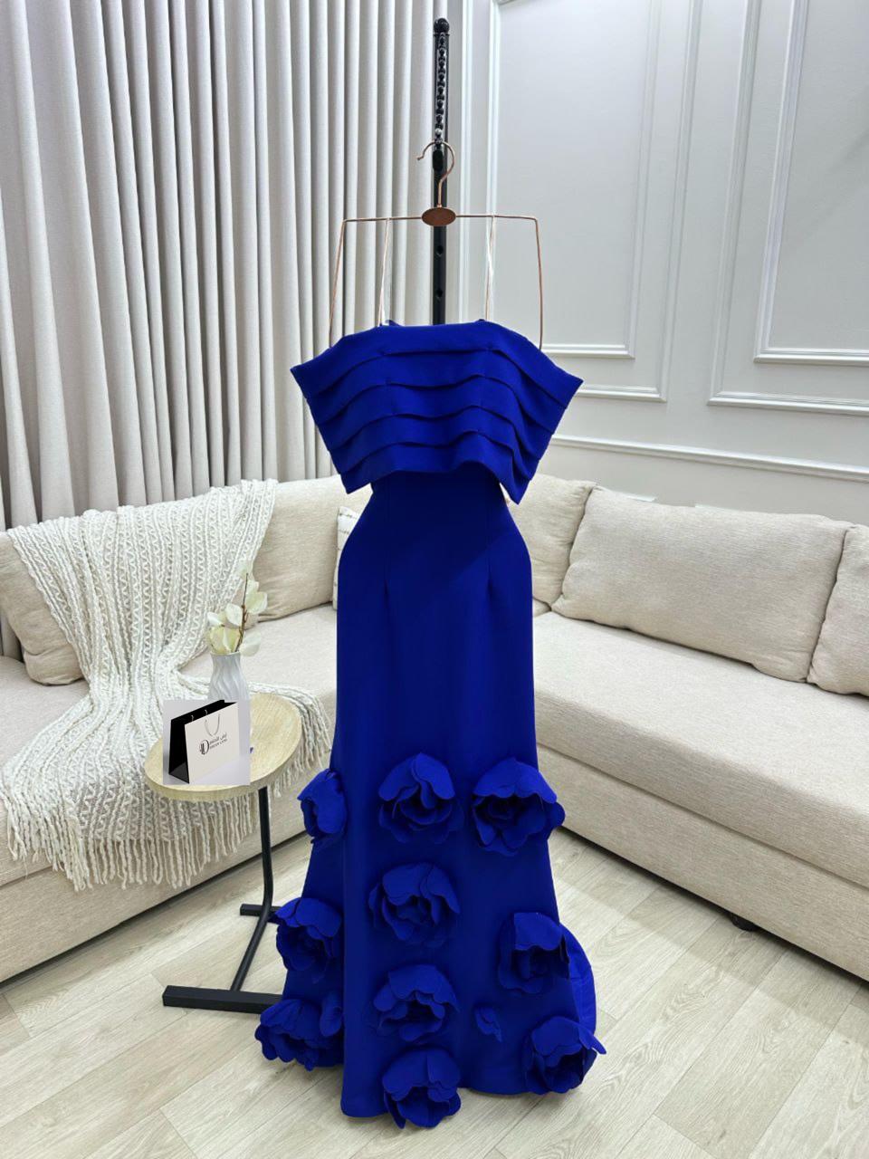 تألقي بإطلالة لا تُنسى مع هذا الفستان السهرة الساحر. يتميز بتصميمه الذي يجمع بين صدريّة درامية مصنوعة من طبقات قماشية مطوية، وورود بارزة كبيرة تزين الجزء السفلي من التنورة. هذا الفستان هو الخيار الأمثل للمناسبات الرسمية، وحفلات الزفاف، أو أي احتفال يتطلب إطلالة فنية وجذابة.
