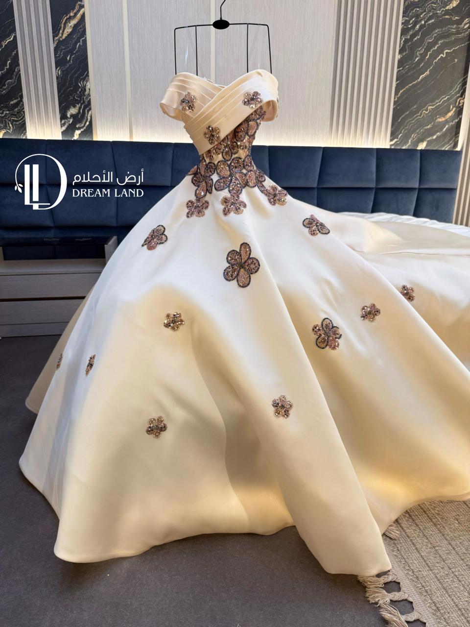 - التفاصيل: تطريز ورود فاخر على كامل الفستان.