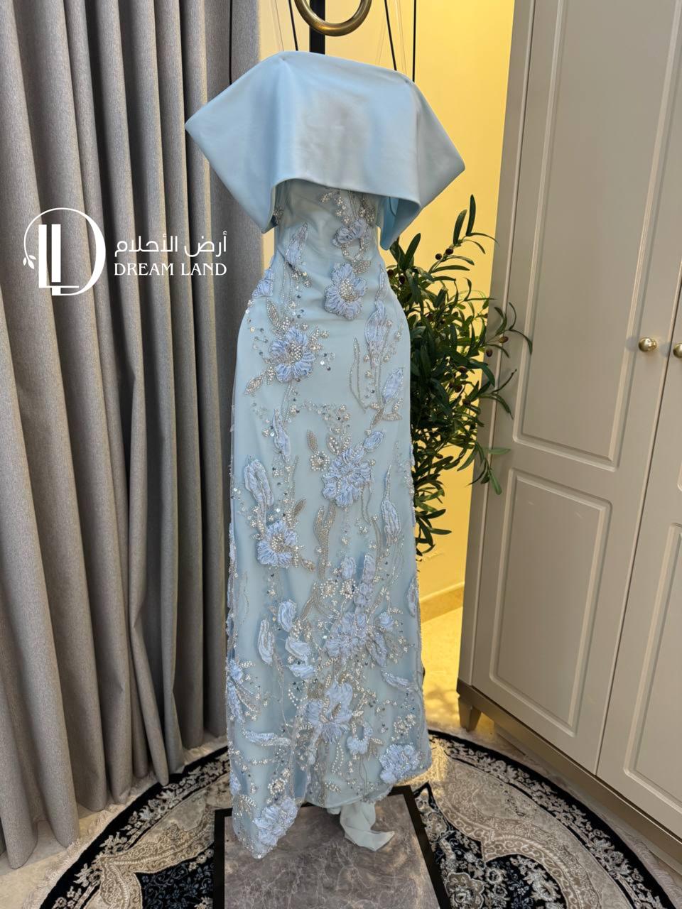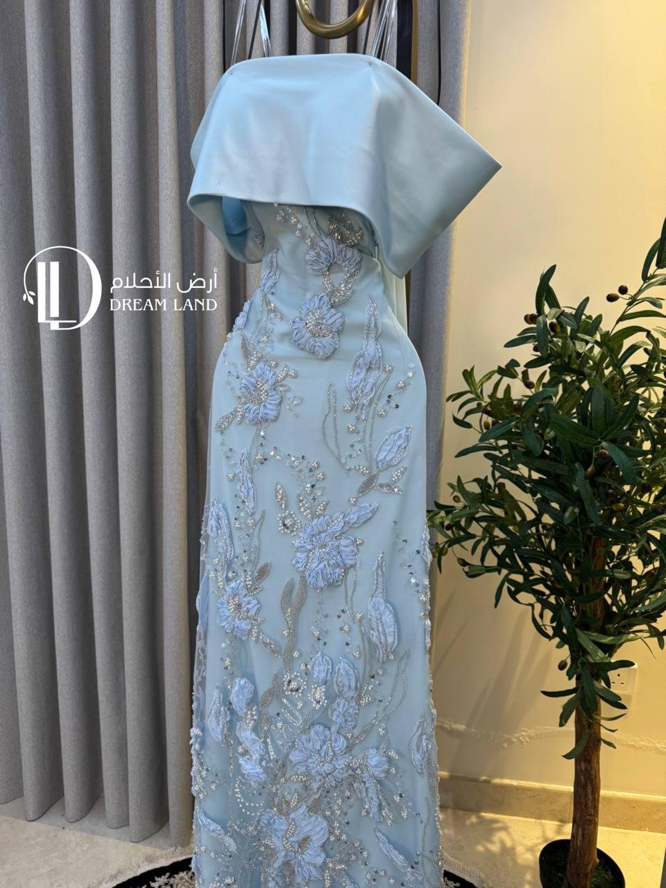 كوني أيقونة الأناقة والتميز مع هذا الفستان السهرة الأزرق الفاتح. يتميز بتصميمه الذي يجمع بين ياقة منسدلة تضفي لمسة من الرقي، وصدريّة مزينة بتطريز ورود بارز يغطي الفستان بالكامل. ينساب الفستان بقصة مستقيمة ليمنحك حضوراً واثقاً وجذاباً. هذا الفستان هو الخيار الأمثل للمناسبات الرسمية، وحفلات الزفاف، أو أي احتفال يتطلب إطلالة ملكية.
