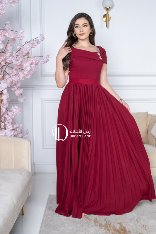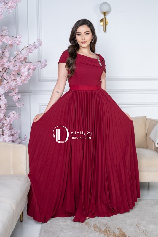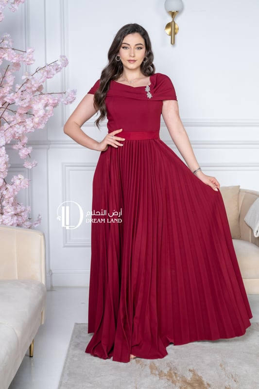 تألقي بإطلالة لا تُنسى مع هذا الفستان السهرة العنابي الساحر. يتميز بتصميمه الذي يجمع بين ياقة منسدلة تضفي لمسة من الرقي، وخصر محدد يبرز جمال القوام. وتنسدل التنورة بقصة واسعة من البليسيه تمنحك حضوراً أنيقاً وساحراً. هذا الفستان هو الخيار الأمثل للمناسبات الرسمية، وحفلات الزفاف، أو أي احتفال يتطلب إطلالة جذابة وراقية.