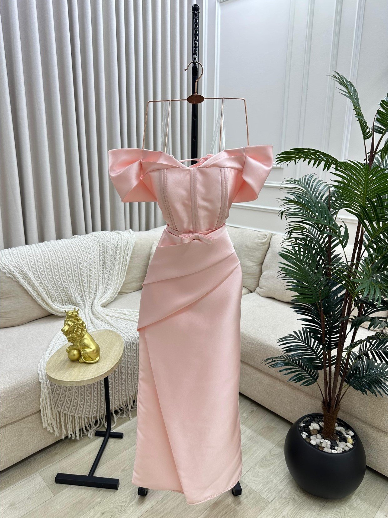 تألقي بإطلالة حالمة مع فستان السهرة الوردي الفاخر هذا. يتميز بتصميم يبرز جمال القوام، حيث تأتي قصته العلوية بشكل كورسيه محدد للخصر، مع أكتاف منسدلة تضفي لمسة من الأنوثة والرقي. قماش الفستان المصنوع من الساتان اللامع يزيد من فخامته، بينما تمنحك الفتحة الأمامية لمسة عصرية وجريئة. هذا الفستان هو الخيار الأمثل لحفلات الزفاف، والمناسبات الرسمية، أو أي احتفال تبحثين فيه عن إطلالة تجمع بين الجمال والفخامة.