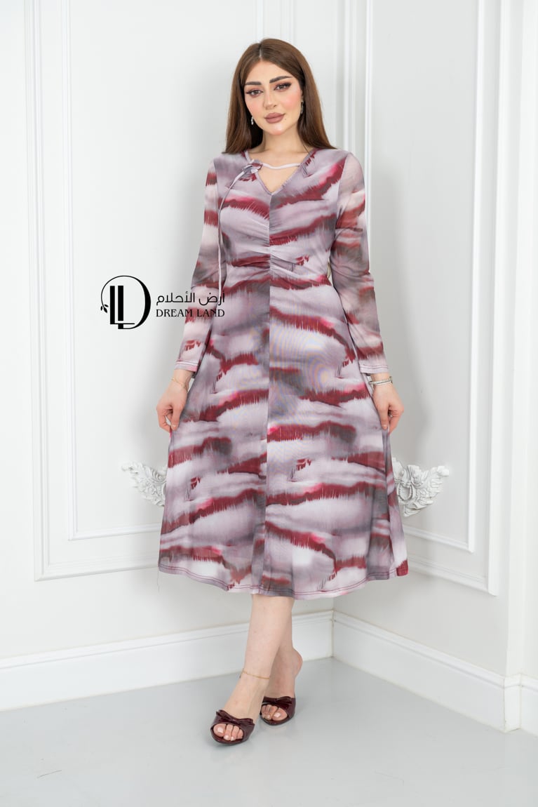 كوني أيقونة الأناقة والتميز مع هذا الفستان الميدي المنقوش. يتميز بتصميمه الذي يجمع بين ياقة V أنيقة، وقصة مزمومة عند الخصر تبرز جمال القوام. كما تضفي الطبعة العصرية التي تجمع بين الألوان الهادئة على إطلالتك لمسة فريدة ومختلفة. هذا الفستان هو الخيار الأمثل للمناسبات النهارية، وحفلات الغداء، أو أي احتفال يتطلب إطلالة عصرية ومختلفة.